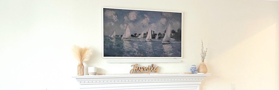 After contemplating getting a Frame TV for the past couple of years, we finally decided to bite the bullet and get one this past winter. Despite the work and expense involved to install it (which was significant–not gonna lie), I would do it again in a heartbeat. Overall I have LOVED our Frame and can’t imagine going back to a regular TV in our living room.